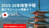 2024~2025雪予報 トップ X Facebook はてブ Pocket LINE コピー 2024.09.192025.10.11 2024年9月24日 気象庁の3ヶ月予報が更新されたので情報を追記します。 最新の情報だと12月低気圧の影響を受けやすく、東日本海側で冬型の気圧配置が強まる時期があるためスタートダッシュでたくさん雪が降る可能性が高い。西日本では平年並みとのこと。 しかし、ラニーニャ現象の発生する可能性は相変わらず高く去年よりも多い降雪は期待できそうだ。 気象庁ホームページから引用 今年は各ゲレンデのオープン予定日もちらほら情報が出てき始めているので早めに準備をしておいた方がいいかもしれない。 次へ 12